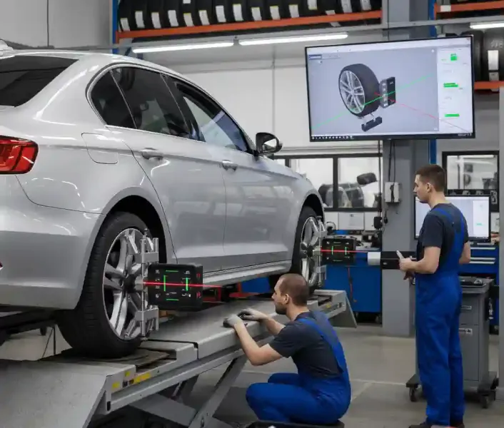 El alineamiento consiste en ajustar los ángulos de las ruedas para que trabajen de manera paralela entre sí y perpendiculares al suelo. Este proceso se realiza con equipos especializados que garantizan que el vehículo mantenga una trayectoria recta y estable.